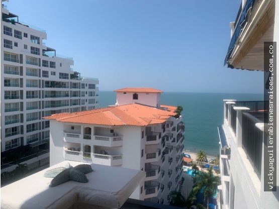 El apartamento está en el piso décimo y goza de vista hacia las piscinas y el mar. Es amplio,y muy ventilado, se encuentra en muy buenas condiciones.